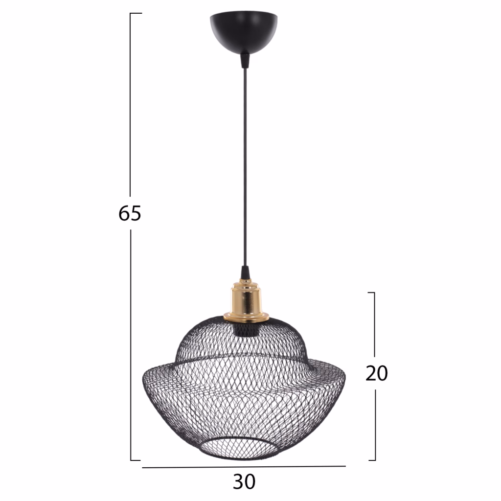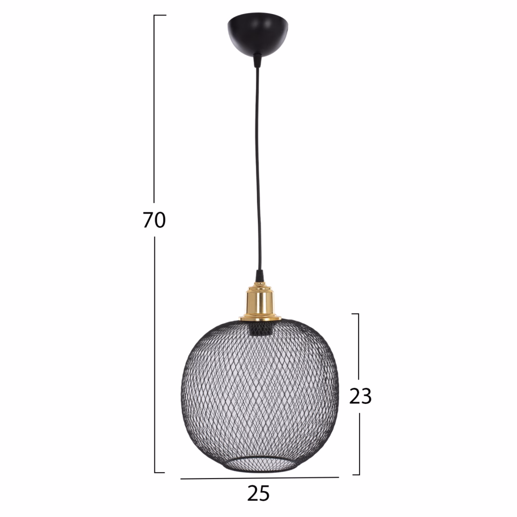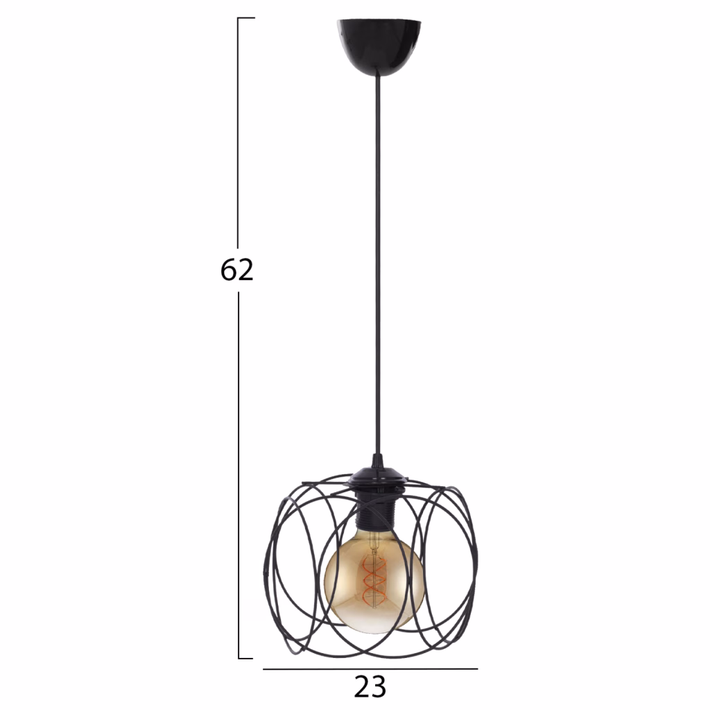 Φωτιστικό οροφής, σε μαύρη απόχρωση. Ένα φωτιστικό εξαιρετικής ποιότητας, με ξεχωριστό design,πρωτότυπο και κομψό στιλ, για την ανανέωση της διακόσμησης του προσωπικού σας χώρου. Κατασκευασμένο από μεταλλικό σκελετό, εξαιρετικής αντοχής. Δέχεται λαμπτήρα E27. Υπάρχει δυνατότητα χρήσης λαμπτήρων LED. Διαστάσεις:25x74cm Διαστάσεις γλόμπου:15x15cm Ευρωπαϊκής κατασκευής και προέλευσης. Το προϊόν διατίθεται σε εργοστασιακή συσκευασία.