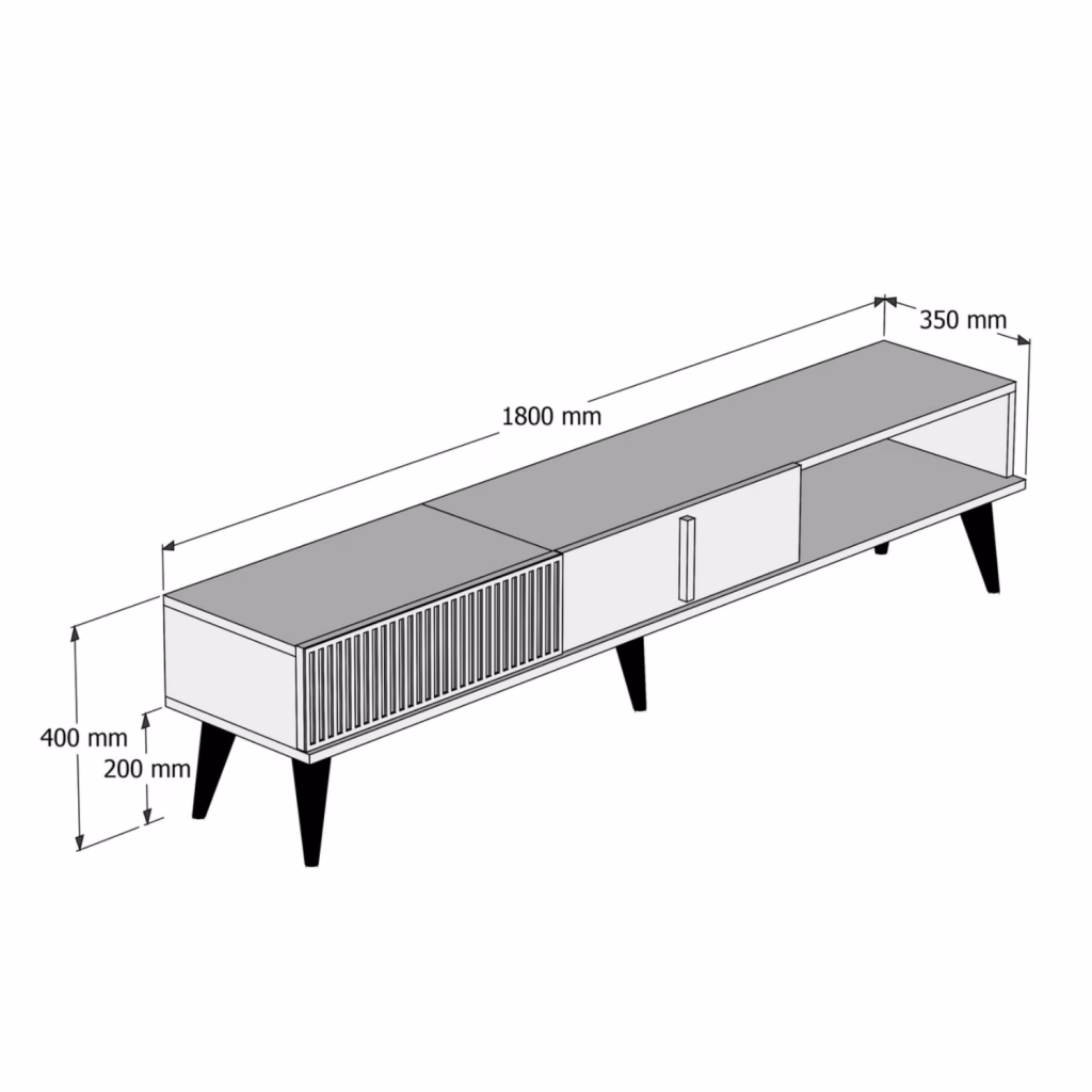 Μοντέρνο έπιπλο τηλεόρασης, σε απόχρωση zebrano. Κατασκευασμένο από μελαμίνη, με ένα ντουλάπι και με ειδικά διαμορφωμένα ράφια για να τοποθετούνται ηλεκτρονικές συσκευές ή διακοσμητικά. Διαστάσεις: 180x40x41Y εκ. Παρατηρήσεις: 1)Το έπιπλο τηλεόρασης διατίθεται σε πακέτο αμοντάριστο με αναλυτικές οδηγίες συναρμολόγησης.