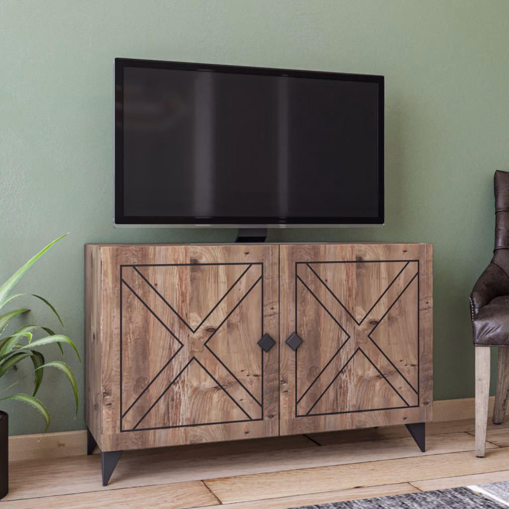 Μοντέρνο έπιπλο τηλεόρασης, σε απόχρωση Sonama. Κατασκευασμένο από μελαμίνη, με ειδικά διαμορφωμένα ράφια για να τοποθετούνται ηλεκτρονικές συσκευές ή διακοσμητικά. Διαστάσεις: 120x40x41Y εκ. Παρατηρήσεις: 1)Το έπιπλο τηλεόρασης διατίθεται σε πακέτο αμοντάριστο με αναλυτικές οδηγίες συναρμολόγησης.