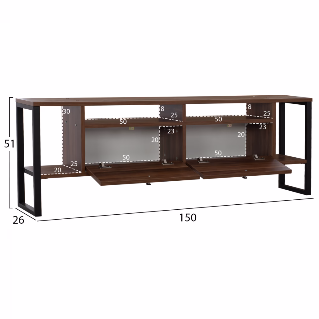 Σύνθετο τηλεόρασης σε καρυδί απόχρωση 150x26x51 εκ. Έπιπλο τηλεόρασης με minimal αλλά και παράλληλα industrial design στα πόδια, που θα εμπλουτίσει καλαίσθητα την αισθητική του καθιστικού σας. Μία έξυπνη ιδέα διακόσμησης με έπιπλο τηλεόρασης που διαθέτει δύο ανοικτές επιφάνειες δεξιά και αριστερά, δύο ευρύχωρα ντουλάπια και δύο ράφια, για την τοποθέτηση ηλεκτρονικών συσκευών, μικροαντικειμένων, βιβλίων […]