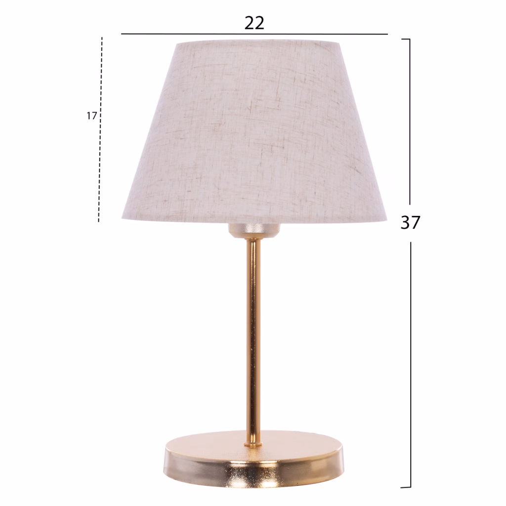 Μοντέρνο επιτραπέζιο φωτιστικό με κυκλική βάση και κολώνα σε χρυσό χρώμα, και μπεζ της άμμου υφασμάτινο τραπεζοειδές καπέλο. Πρόκειται για διακοσμητικό φωτιστικό, σε απλή και λιτή γραμμή. Το φως διαχέεται στον χώρο ευχάριστα και η αντανάκλασή του πάνω στην χρυσή κολωνίτσα του φωτιστικού αλλά και στην χρυσή επιφάνεια της βάσης, παιχνιδίζει ευχάριστα στο μάτι. Αυτού […]
