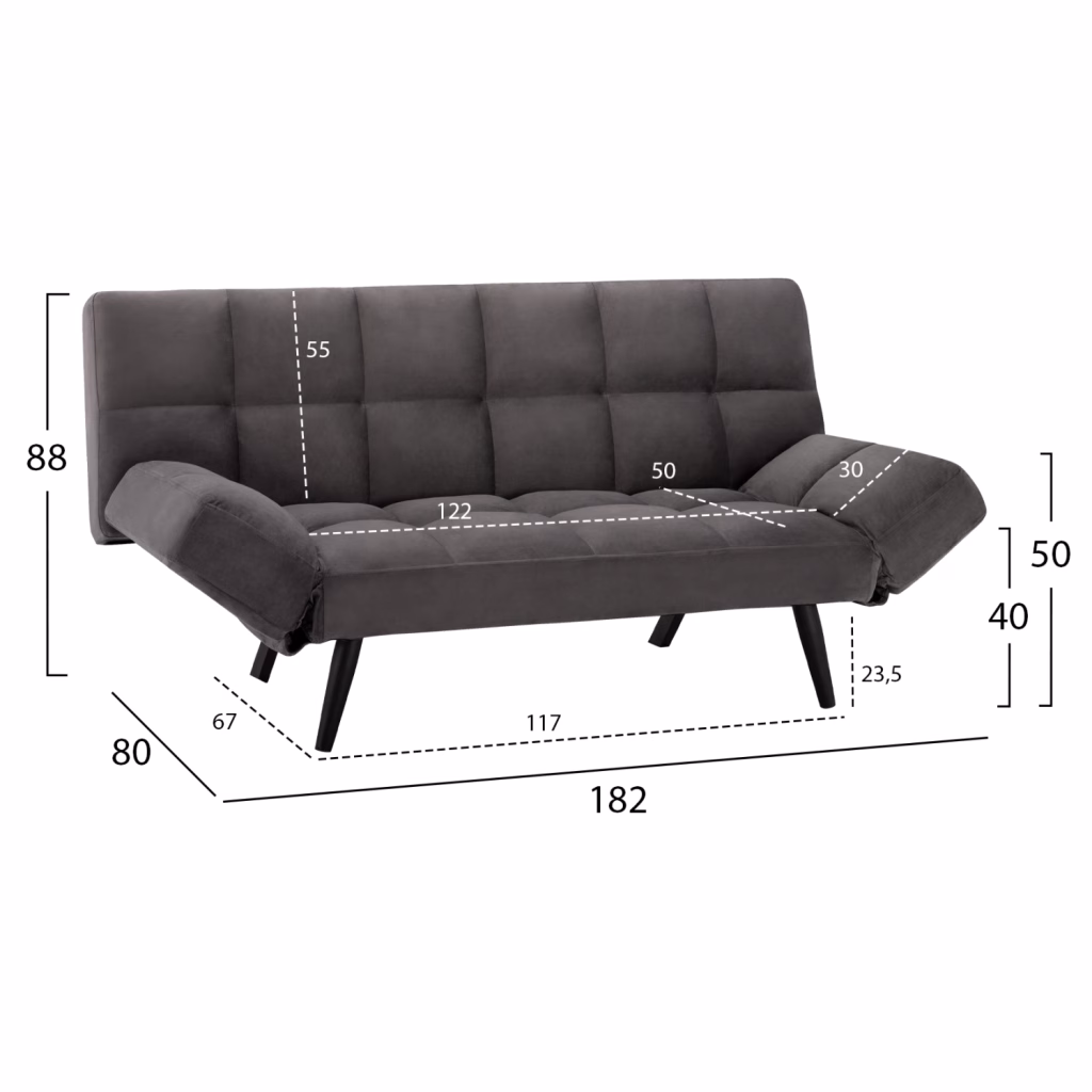 Καναπές τριθέσιος, επενδεδυμένος με βελούδινο ύφασμα σε γκρι απόχρωση 182Χ80Χ88Υ εκ. Πτυσσόμενος καναπές-κρεβάτι κατάλληλος για το καθιστικό ή το δωμάτιό σας,η πλάτη του, έχει την δυνατότητα να πέφτει πίσω και να μετατρέπεται εύκολα σε ένα άνετο κρεβάτι ή να παραμένει σε ανάκλιση, ενώ τα μπράτσα του είναι αναδιπλούμενα. Αν αναζητάτε στα έπιπλά σας την άνεση […]