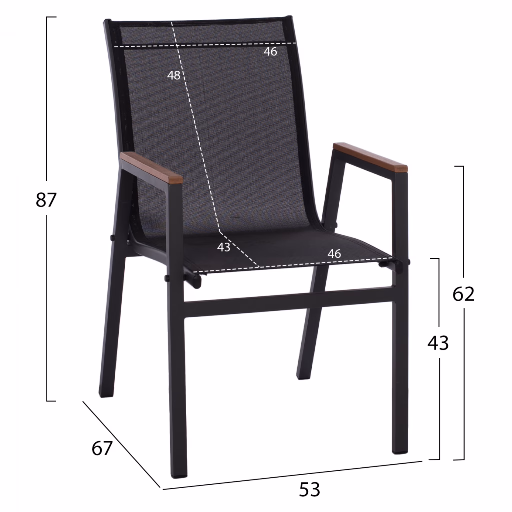 Επαγγελματική πολυθρόνα, Shyla, εξωτερικού χώρου σε σκούρη γκρι απόχρωση. Κατασκευασμένη από σκελετό αλουμινίου, επαγγελματικών προδιαγραφών με γκρι σκελετό και κάθισμα από μαύρο textilene. Μία πολυθρόνα, που ο σχεδιασμός της στηρίζει την σπονδυλική στήλη και προσφέρει άνεση και εργονομία. Η επιφάνεια το μπράτσων είναι από Polywood, ένα υλικό που παράγεται από 100% ανακυκλώσιμη πλαστική ξυλεία και […]