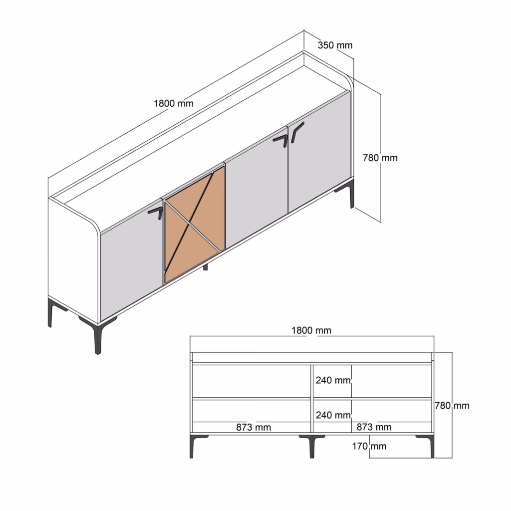 Μπουφές σε μοντέρνο αλλά και λιτό στυλ, κατασκευασμένο από ανθεκτική μελαμίνη υψηλής ποιότητας πάχους 18mm σε καρυδί απόχρωση με λεπτομέρειες από μαύρο μαρμάρινο εφέ και πόδια από ενισχυμένο πολυπροπυλένιο,με αντοχή στην καταπόνηση, την φθορά και τον χρόνο. Ο μπουφές διαθέτει τρία ευρύχωρα ντουλάπια με εσωτερικά ράφια όπου δημιουργούν έξι αποθηκευτικούς χώρους. Συνδύασέ τον με έπιπλα […]