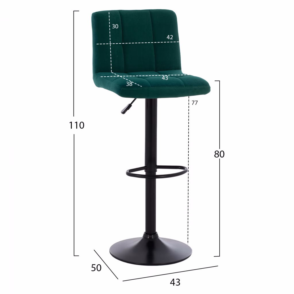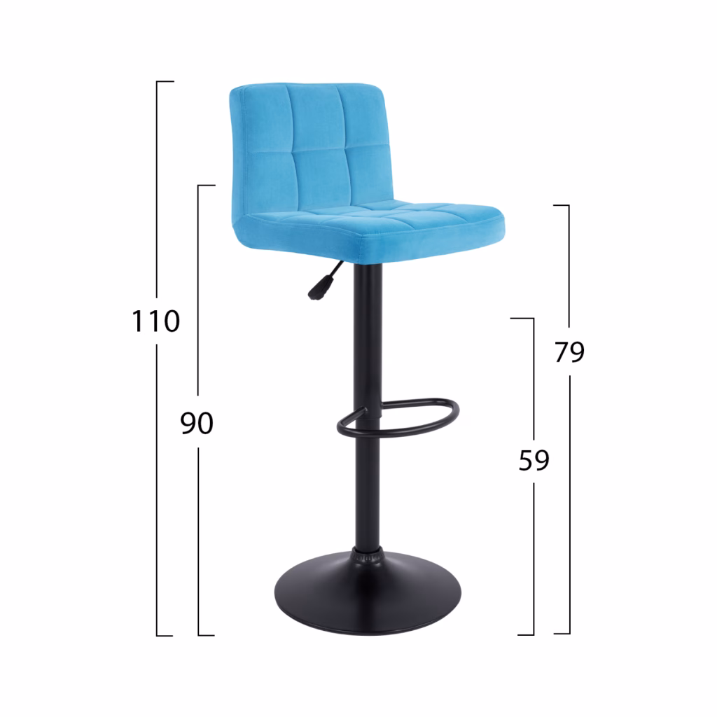 Σκαμπό μπάρ-κουζίνας με αμορτισέρ από σκελετό σε μαύρη απόχρωση, με κάθισμα και πλάτη από τιρκουάζ βελούδο. Διαστάσεις. ΜΑΧ ύψος πλάτης.110 εκ. ΜΙΝ ύψος πλάτης.90 εκ. ΜΑΧ ύψος καθίσματος.79 εκ. ΜΙΝ ύψος καθίσματος.59 εκ. Διαστάσεις πλάτης.44×31 εκ. Διαστάσεις καθίσματος.44×40 εκ. Παρατηρήσεις 1)Το σκαμπό διατίθεται σε πακέτο ΠΡΟΣΟΧΗ: Το προϊόν διατίθεται αμοντάριστο σε πακέτο των δύο τεμαχίων […]