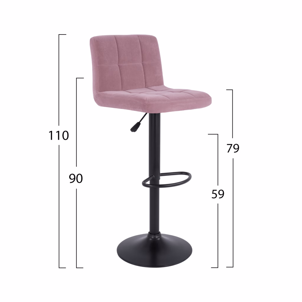 Μεταλλικό σκαμπώ μπάρ ανθεκτικής κατασκευής με μεταλλικό σκελετό και βελούδο. Διαστάσεις: 46×40 εκ. Ύψος καθίσματος: 65 ή 72 εκ. (κατόπιν κατασκευής) Κατάλληλο για επαγγελματική χρήση.
