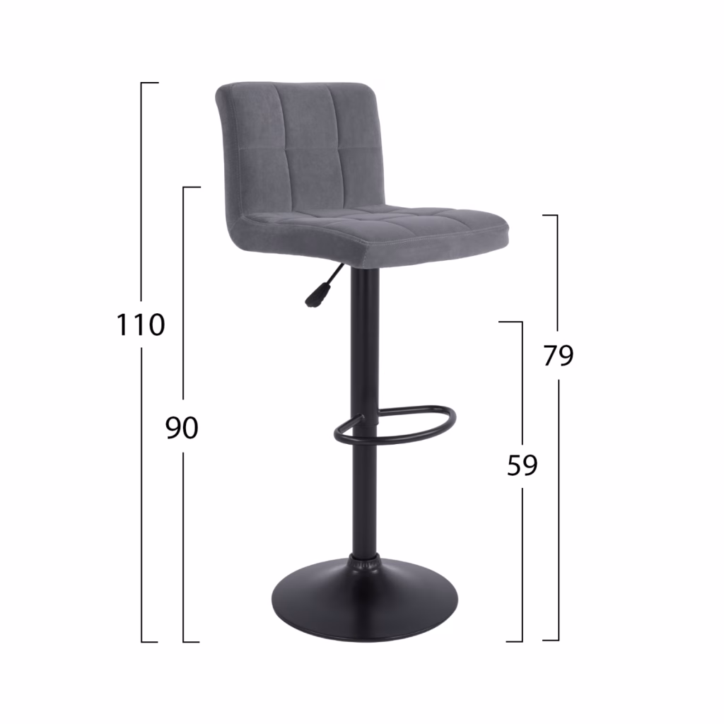 Σκαμπό μπάρ-κουζίνας με αμορτισέρ από σκελετό σε μαύρη απόχρωση, με κάθισμα και πλάτη απο γκρι βελούδο. Διαστάσεις. ΜΑΧ ύψος πλάτης.110 εκ. ΜΙΝ ύψος πλάτης.90 εκ. ΜΑΧ ύψος καθίσματος.79 εκ. ΜΙΝ ύψος καθίσματος.59 εκ. Διαστάσεις πλάτης.44χ31 εκ. Διαστάσεις καθίσματος.44χ40 εκ. Παρατηρήσεις 1)Το σκαμπό διατίθεται σε πακέτο ΠΡΟΣΟΧΗ: Το προϊόν διατίθεται αμοντάριστο σε πακέτο των δύο τεμαχίων […]