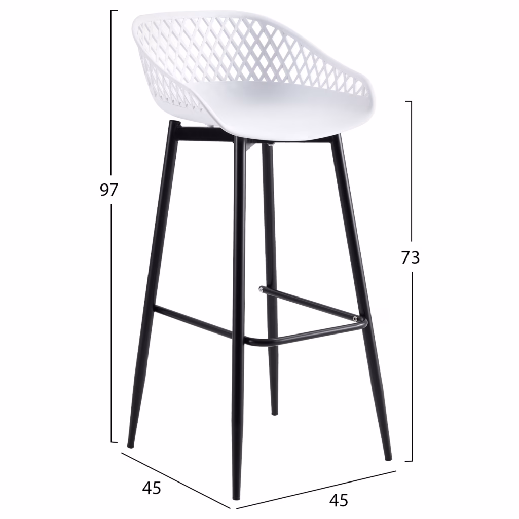 Επιλέξτε μοντέρνα σκαμπό που δίνουν στο χώρο σας μια διαφορετική νότα. Το σκαμπό μπαρ AVAYA είναι κατασκευασμένο από πολυπροπυλένιο σε ΛΕΥΚΗ απόχρωση, με ΜΑΥΡΑ μεταλλικά πόδια. Διαστάσεις: 45x45x97Υ εκ. Ύψος καθίσματος: 73 εκ. *Το σκαμπό παραδίδεται αμοντάριστο σε εργοστασιακή συσκευασία.