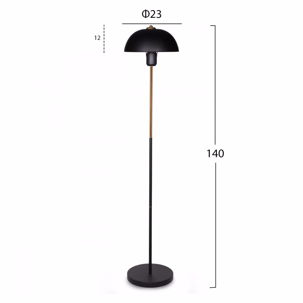 Φωτιστικό δαπέδου με μονή μεταλλική ράβδο σε μαύρο και χρυσό χρώμα. Το «καπέλο» του φωτιστικού έχει σχήμα καμπάνας και έχει επίσης μαύρο χρώμα, ενώ η βάση στήριξης είναι μαύρη και κυκλική. Ένα όμορφο φωτιστικό δαπέδου που διαχέει το περισσότερο φως προς τα κάτω και δημιουργεί την ατμόσφαιρα που πάντα φανταζόσασταν για τον χώρο σας, έτσι […]