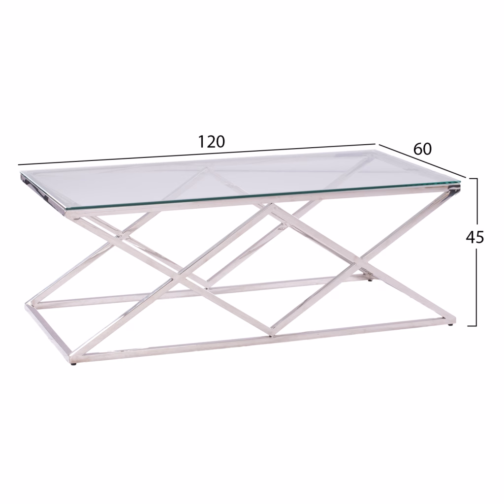 Τραπέζι σαλονιού HOLLAND με μεταλλικό σκελετό χρωμίου και γυάλινη επιφάνεια. Διαστάσεις: 120x60x45 εκ.