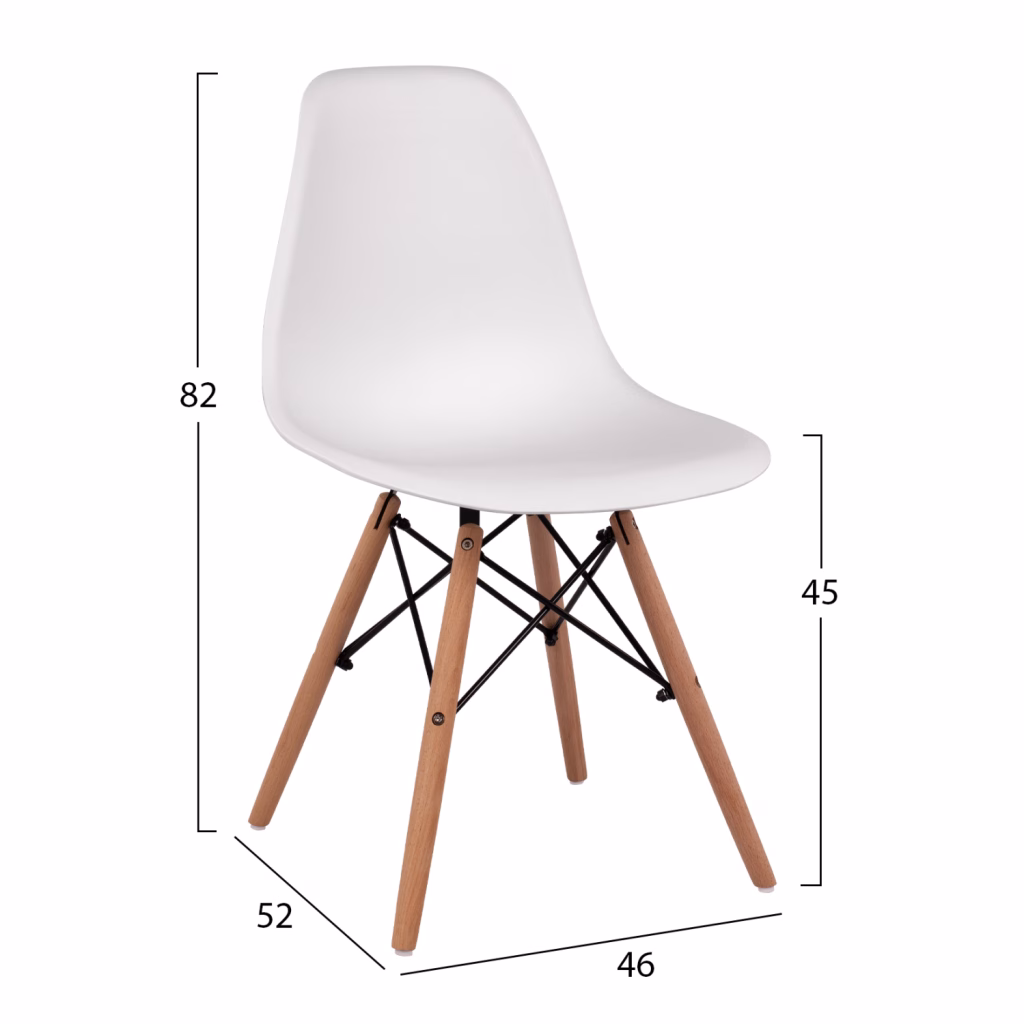 Μία μοντέρνα καρέκλα κατασκευασμένη από ξύλινο σκελετό και κάθισμα πολυπροπυλενίου σε λευκή απόχρωση. Τα πόδια της καρέκλας είναι από μασίφ ξύλο σε φυσική απόχρωση. Σε όποιο δωμάτιο κι αν την βάλει κανείς, θα βρουν τη χρησιμότητά τους. Η καρέκλα ενδείκνυται για οικιακή χρήση. FULL K/D (θελει συναρμολόγηση) Διαστάσεις: 46x50x82 εκ. Ύψος καθίσματος: 44 εκ. Διαστάσεις […]
