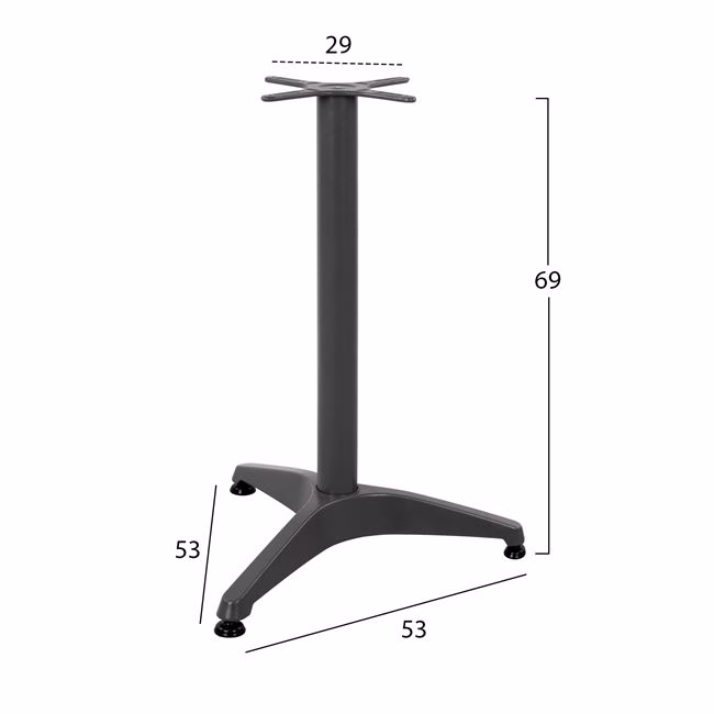 Βάση τραπεζιού τρίνυχη HM449 κατασκευασμένη από αλουμίνιο σε γκρι απόχρωση, με ρεγουλατόρους. Διαστάσεις στηρίγματος επιφάνειας: 29×29 εκ. Διαστάσεις βάσης: 53×53 εκ. Ύψος βάσης: 69 εκ. Η Βάση ενδείκνυται για επιφάνεια Φ60cm. Σημαντική Σημείωση Προσοχή: Οι ξυλόβιδες που πιθανόν να περιέχονται στην συσκευασία για να βιδωθεί το καπάκι ενδέχεται να μην είναι κατάλληλες για το καπάκι […]