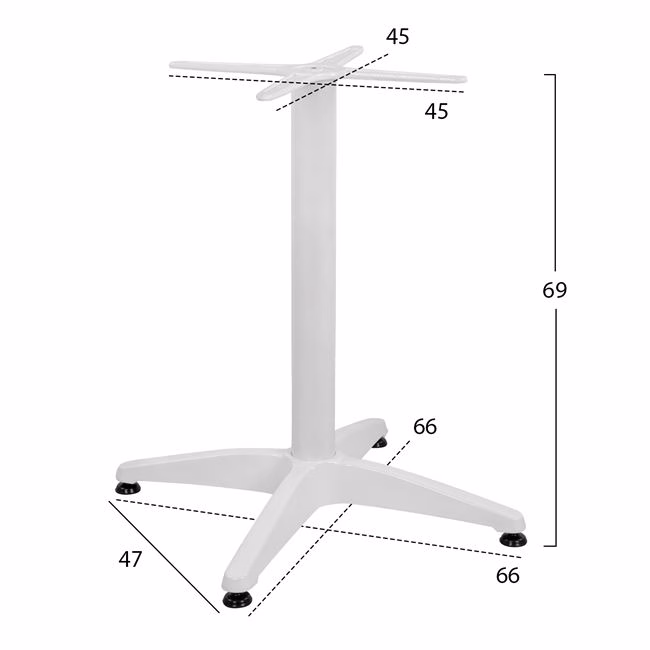 Βάση τραπεζιού τετράνυχη HM448.02 κατασκευασμένη από αλουμίνιο σε λευκή απόχρωση, με ρεγουλατόρους. Διαστάσεις στηρίγματος επιφάνειας: 45×45 εκ. Διαστάσεις βάσης: 66×66 εκ. Ύψος βάσης: 69 εκ. Η Βάση ενδείκνυται για επιφάνεια Φ60cm ή 60x60cm ή Φ70cm ή 70x70cm. Σημαντική Σημείωση Προσοχή: Οι ξυλόβιδες που πιθανόν να περιέχονται στην συσκευασία για να βιδωθεί το καπάκι ενδέχεται να […]