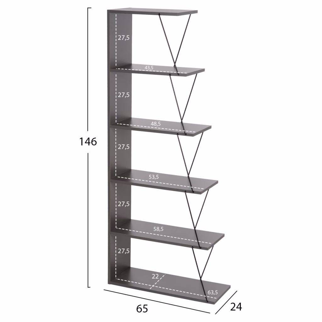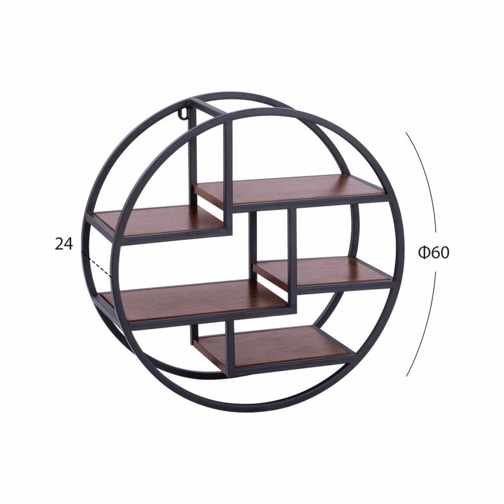 Ραφιέρα τοίχου QUINN από μεταλλικό σκελετό σε μαύρη απόχρωση και βάσεις μελαμίνης σε καρυδί απόχρωση. Μοντέρνος σχεδιασμός, ανθεκτικά υλικά, διαθέτει 5 ράφια ως χώρο αποθήκευσης. Διαστάσεις: Φ60×24 εκ.