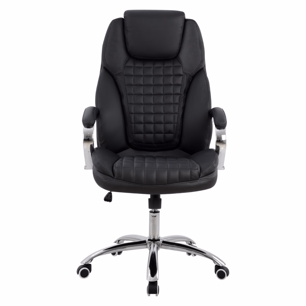 Καρέκλα γραφείου διευθυντική με μπράτσα και ανάκλιση. Από υψηλής ποιότητας PU σε μαύρο χρώμα και μοναδικό design. Ιδανική για αυτούς που κάθονται αρκετές ώρες μπροστά στον υπολογιστή. Μπράτσα μεταλλικά ενισχυμένα βαρέως τύπου επιχρωμιωμένα. Αστέρι μεταλλικό βαρέως τύπου επιχρωμιωμένο. Ροδάκια ενισχυμένα. Κάθισμα και πλάτη με ανατομικά μαξιλαράκια στήριξης. Διαστάσεις: 65x80x127 εκ. Min ύψος: 120 εκ. Max […]