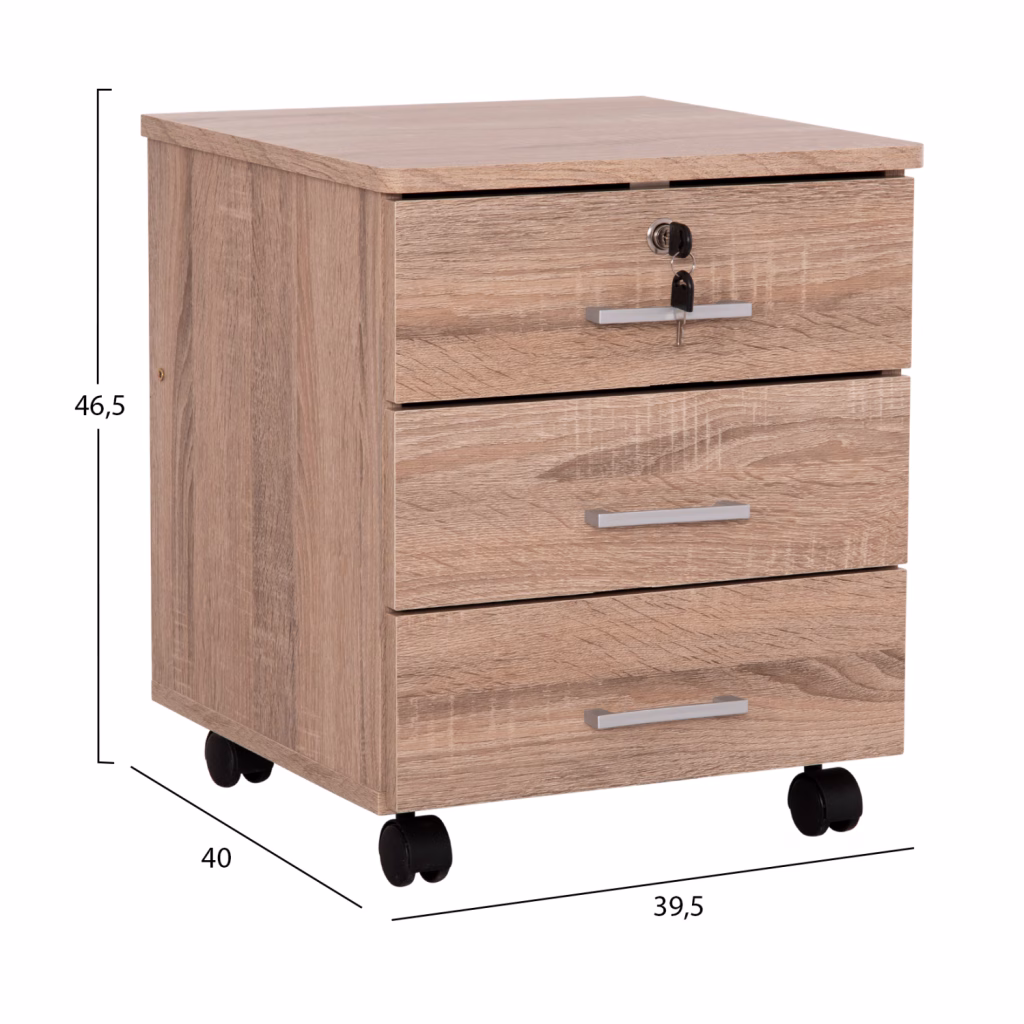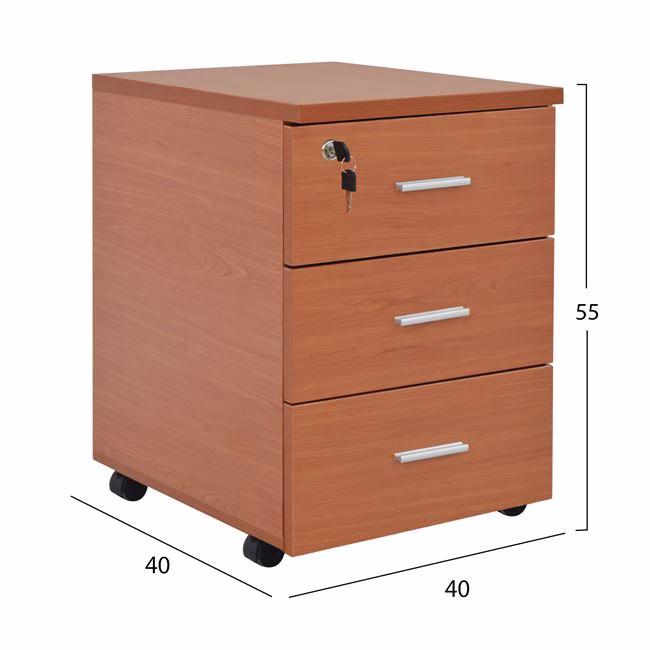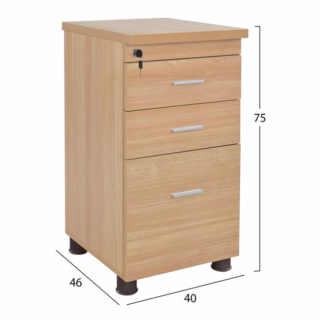 Συρταριέρα γραφείου για επαγγελματική χρήση, κατασκευασμένη από ανθεκτική μελαμίνη σε απόχρωση οξιάς με κλειδαριά, σχεδιασμένη για να αποθηκεύεις έντυπα και τα καθημερινά μικροαντικείμενα του γραφείου σου. Διαστάσεις: 40x40x55 εκ. Παρατηρήσεις: Το προϊόν παραδίδεται αμοντάριστο, σε εργοστασιακή συσκευασία.