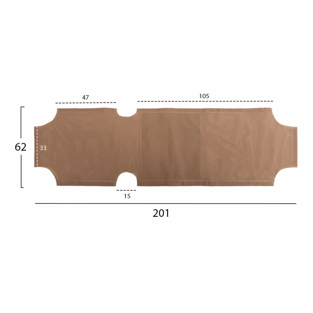 Ανταλλακτικό πανί ξαπλώστρας επαγγελματικού τύπου, σε εκρού απόχρωση. Κατασκευασμένο από PVC ,πλέξη 2×1 textilene και 600gr/m2 Διαθέτει διπλό πανί στο κάθισμα, το οποίο είναι θερμοκολλημένο για μεγαλύτερη αντοχή. ΔΙΑΣΤΑΣΕΙΣ: 201×62 εκ. Διαστάσεις πλάτης: 47×33 εκ. Διαστάσεις καθίσματος: 105×33 εκ. *ΠΡΟΣΟΧΗ ΔΕΝ γίνεται δεκτή οποιαδήποτε επιστροφή η υπαναχώρηση μετά την αγορά οποιουδήποτε ανταλλακτικού πανιού ή υφάσματος […]