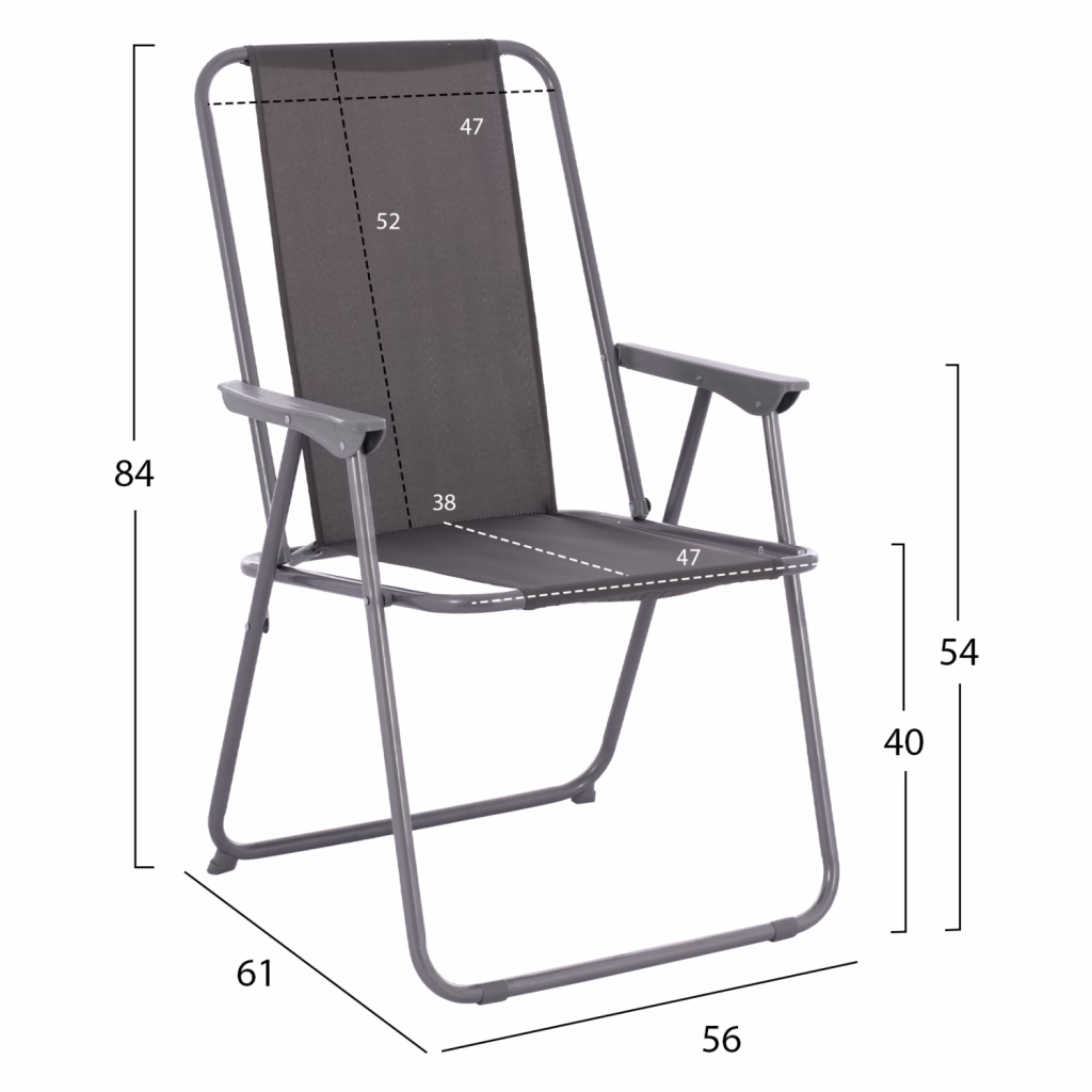 Καρέκλα παραλίας πτυσσόμενη μεταλλική με ψηλή πλάτη και σιέλ ύφασμα. Διαστάσεις Καρέκλας: 56x61x84 εκ. Διαστάσεις καθίσματος: 32-47×38 εκ. Διαστάσεις πλάτης: 32-47×52 εκ. Ύψος καθίσματος: 40 εκ. Ύψος μπράτσων: 54 εκ. Διαστάσεις Κλειστό: 56x5x78 εκ. Το προϊόν είναι κατάλληλο για οικιακή χρήση.