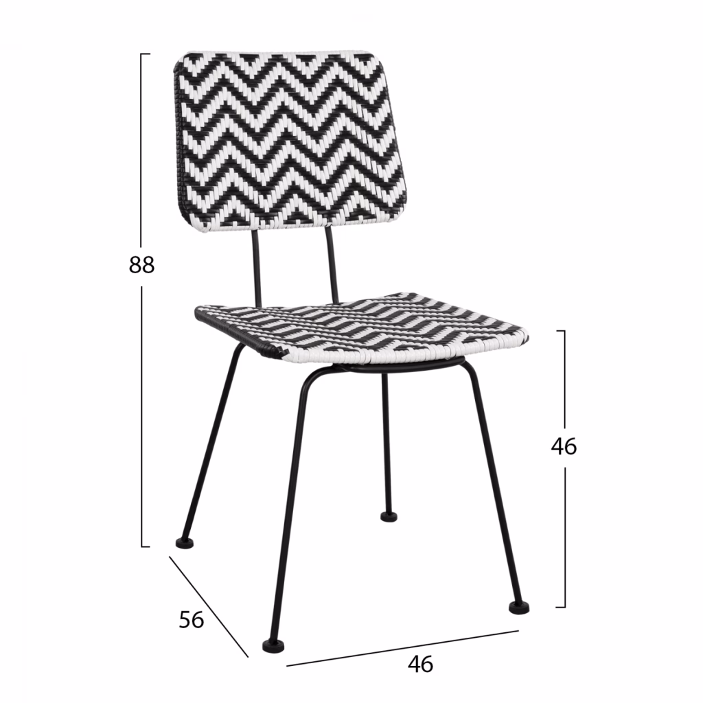 Μοντέρνα καρέκλα εξωτερικού, αλλά και εσωτερικού χώρου, κατασκευασμένη από μεταλλικό σκελετό σε μαύρη απόχρωση και επενδυμένη με πλεκτό wicker σε λευκό & μαύρο chevron. Το wicker έχει μεγάλη ανθεκτικότητα σε υψηλές και χαμηλές θερμοκρασίες από (-85c έως +85c.), ακόμα είναι εμπλουτισμένο με σταθεροποιητή UV για τις ακτίνες του Ήλιου. Ιδανική για χώρους εστίασης αλλά και […]