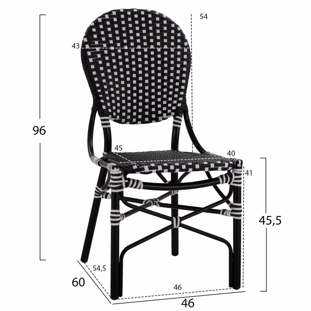 Καρέκλα αλουμινίου Bamboo Look επενδυμένη με wicker σε πλάτη και κάθισμα, σε μαύρη και λευκή απόχρωση ιδανική για εξωτερικό χώρο, μεγάλης αντοχής σε ήλιο και βροχή. Είναι κατασκευασμένη από σκελετό αλουμινίου σε μαύρη απόχρωση. Διαστάσεις: 46x60x96 εκ. Διαστάσεις καθίσματος: 40×45 εκ. Ύψος καθίσματος: 45,5 εκ. Διαστάσεις πλάτης: 43×45-54 εκ. Απόσταση ποδιών: 46×54,5 εκ. Ύψος ποδιών: […]