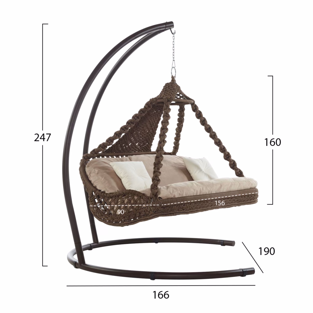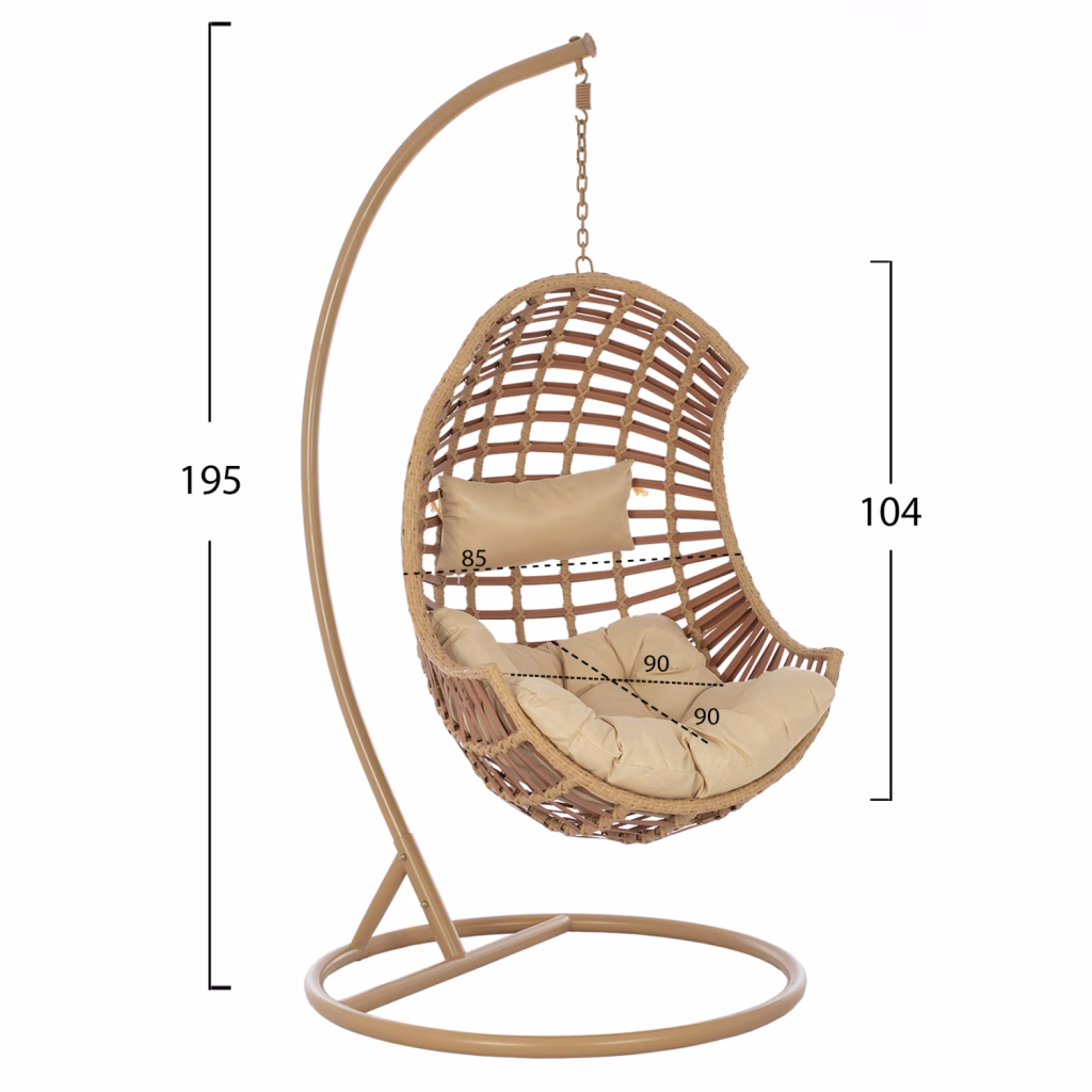 Κρεμαστή Πολυθρόνα φωλιά, με απλή πλέξη φυσικού χρώματος, σκελετό αλουμινίου και σιδερένια βάση σε μπεζ απόχρωση. Πλεγμένη με wicker σε φυσικό χρώμα, υλικό (wicker rattan) που έχει μεγάλη ανθεκτικότητα σε υψηλές θερμοκρασίες [-85C έως +85C ], εμπλουτισμένο με σταθεροποιητή UV για τις ακτίνες του ηλίου. Έχει μεγάλη αντοχή στις δύσκολες καιρικές συνθήκες όπως η βροχή […]