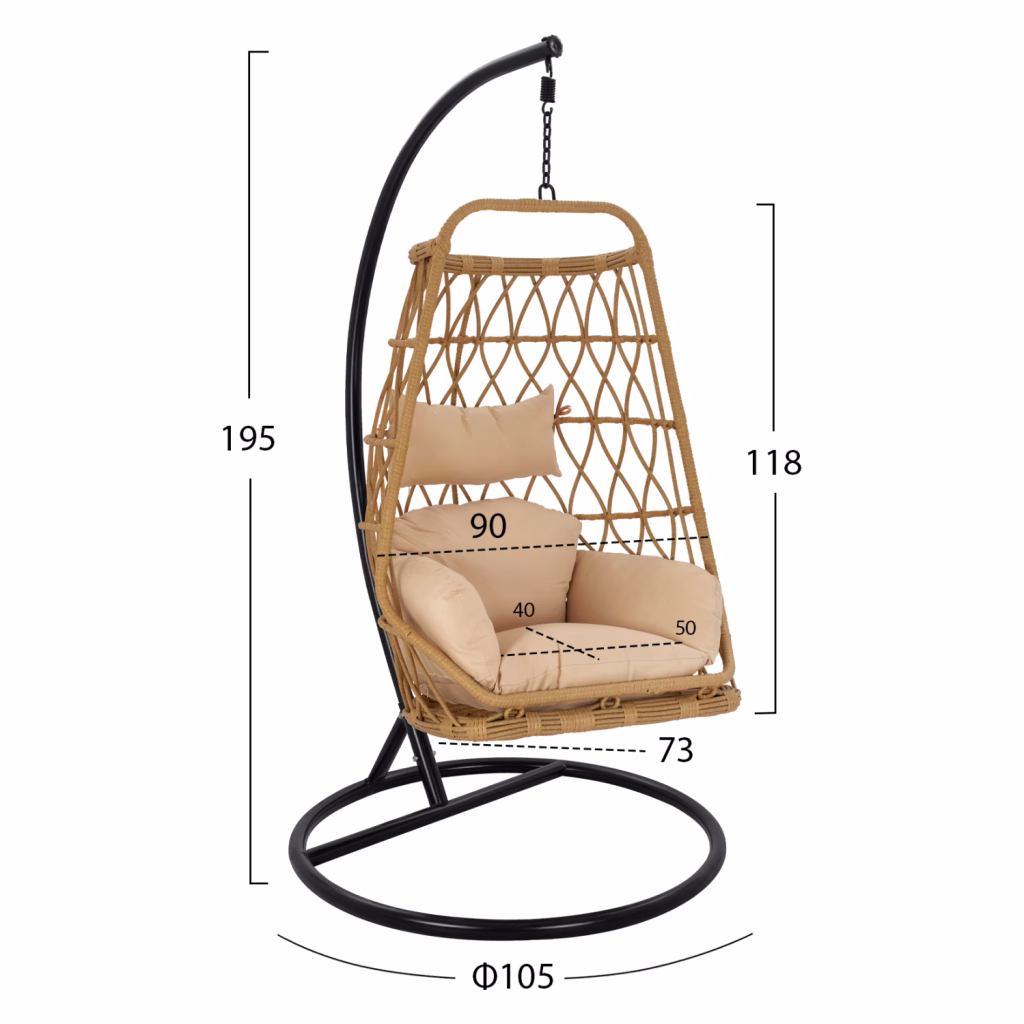 Κρεμαστή πολυθρόνα φωλιά με ιδιαίτερο σχήμα και ρυθμιζόμενο ύψος καθίσματος. Έχει απλή πλέξη με καμπύλες φυσικού χρώματος από wicker rattan, υλικό που έχει μεγάλη ανθεκτικότητα σε υψηλές θερμοκρασίες [-85C έως +85C ], εμπλουτισμένο με σταθεροποιητή UV για τις ακτίνες του ηλίου. Έχει μεγάλη αντοχή στις δύσκολες καιρικές συνθήκες όπως η βροχή και οι υπεριώδεις ακτίνες […]