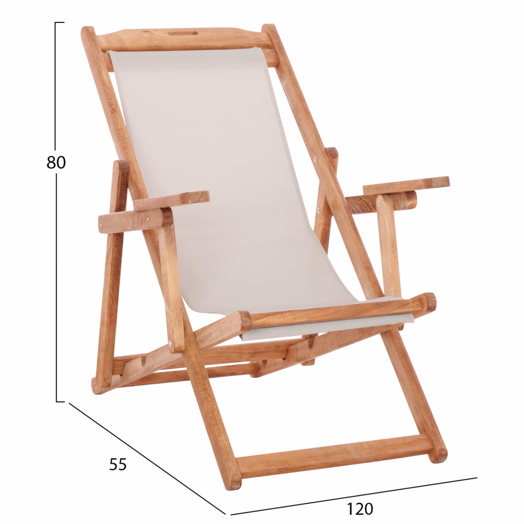 Σεζλόνγκ Λήμνος με μπράτσα σε φυσική απόχρωση και pvc εκρου 62,5x97x105 εκ. Διαθέτει τρεις θέσεις ανάκλισης και είναι πτυσσόμενη για εύκολη αποθήκευση, καταλαμβάνοντας τον ελάχιστο δυνατό χώρο όταν δεν χρησιμοποιείται. Κλασσικός σχεδιασμός με πλάτη που στηρίζει το σώμα και με μπράτσο για την ξεκούραση των χεριών. Κατασκευασμένη από ενισχυμένο μασίφ ξύλινο σκελετό αρίστης ποιότητας από […]
