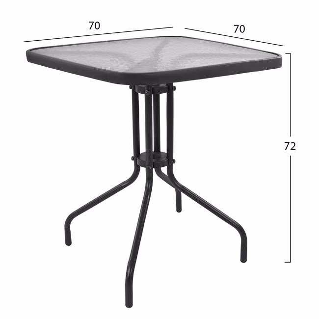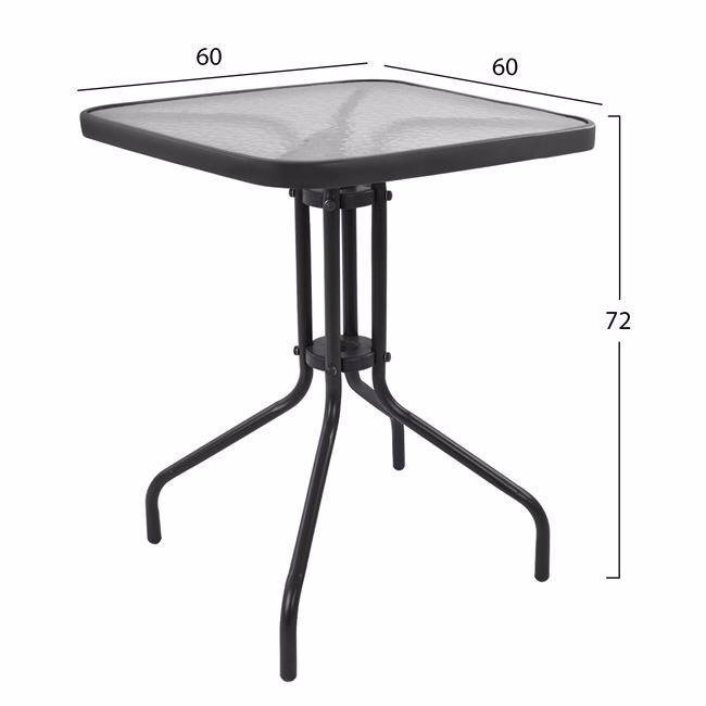 ΤΟ ΣΕΤ ΠΕΡΙΛΑΜΒΑΝΕΙ Ένα τραπέζι κατασκευασμένο από μεταλλικό σκελετό σε γκρι απόχρωση με γυάλινη επιφάνεια. Διαστάσεις: 60x60x72Υ εκ. Δύο πολυθρόνες από μεταλλικό σκελετό με κάθισμα και πλάτη από φέτες σε γκρι απόχρωση. Διαστάσεις: 54x59x73Υ εκ. Ύψος καθίσματος: 44 εκ. Ύψος μπράτσων: 62 εκ. Διαστάσεις καθίσματος: 42×36 εκ.