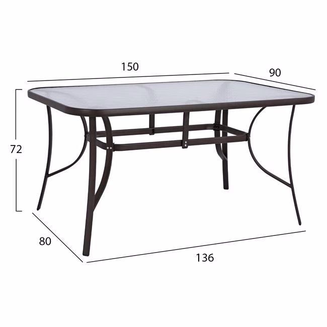 ΤΟ ΣΕΤ ΠΕΡΙΛΑΜΒΑΝΕΙ Ένα τραπέζι μεταλλικό εξωτερικού χώρου σε χρώμα καφέ, με ενσωματωμένο τζάμι ασφαλείας (secure). Διαστ. Τραπεζιού: 150x90x72Υ εκ. ‘Εξι πολυθρόνες εξωτερικού χώρου από μεταλλικό σκελετό σε καφέ χρώμα με textilene 2×1 μεγάλης αντοχής σε ήλιο και βροχή, με αδιάβροχο μαξιλάρι σε μπεζ απόχρωση. Διαστάσεις: 54x70x93 εκ. Ύψος καθίσματος: 43 εκ. Ύψος μπράτσων: 59 […]