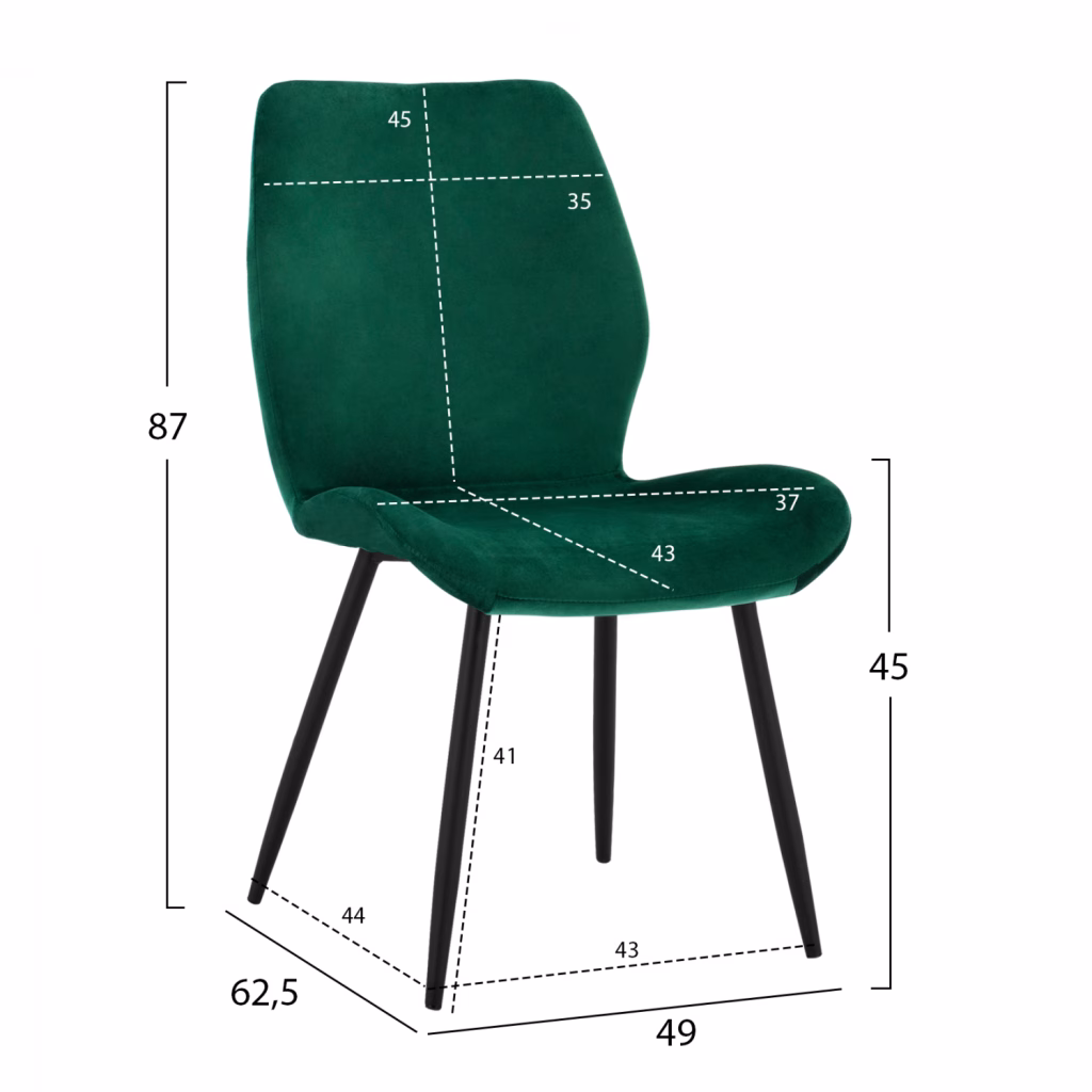 Καρέκλα από βελούδινο ύφασμα σε κυπαρισσί απόχρωση, με μεταλλικό σκελετό σε μαύρη απόχρωση 50x50x80 εκ. Θα σας κάνει να τη λατρέψετε, διότι είναι πρωτότυπη, κομψή και εργονομική, καθώς ο σχεδιασμός και το ύψος της πλάτης της στηρίζει και αγκαλιάζει την μέση και την πλάτη. Μία καρέκλα που σχεδιάστηκε με προσεγμένη αντοχή και άνεση στο κάθισμα, […]