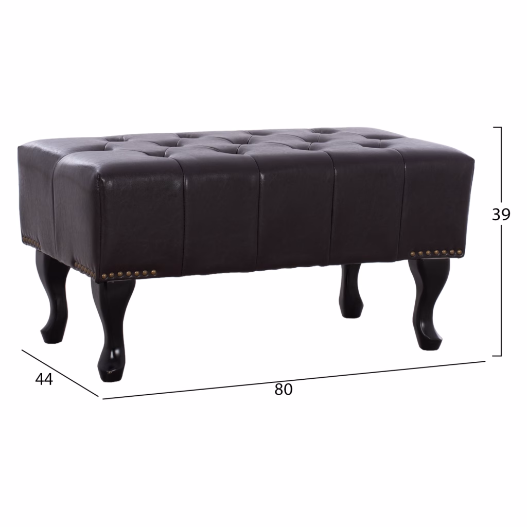 Ταμπουρέ-υποπόδιο τύπου Chesterfield EMMA από PU δέρμα, σε σκούρα καφέ απόχρωση. Διαθέτει ξύλινα πόδια σε μαύρη απόχρωση. Ένα κομψό υποπόδιo που θα ανανεώσει το χώρο σας, δίνοντας μια αίσθηση πολυτέλειας. Διαστάσεις: 80x44x39Y εκ. ** Η χρωματική απόδοση του προϊόντος ενδέχεται να διαφέρει ελαφρώς σε σχέση με την φωτογραφική απεικόνισή του στην οθόνη σας.
