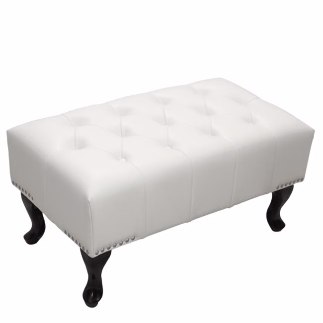 Ταμπουρέ-υποπόδιο τύπου Chesterfield EMMA από PU δέρμα, σε ΛΕΥΚΗ ΜΑΤ απόχρωση. Διαθέτει ξύλινα πόδια σε μαύρη απόχρωση. Ένα κομψό υποπόδιo που θα ανανεώσει το χώρο σας, δίνοντας μια αίσθηση πολυτέλειας. Διαστάσεις: 80x44x39Y εκ. ** Η χρωματική απόδοση του προϊόντος ενδέχεται να διαφέρει ελαφρώς σε σχέση με την φωτογραφική απεικόνισή του στην οθόνη σας.