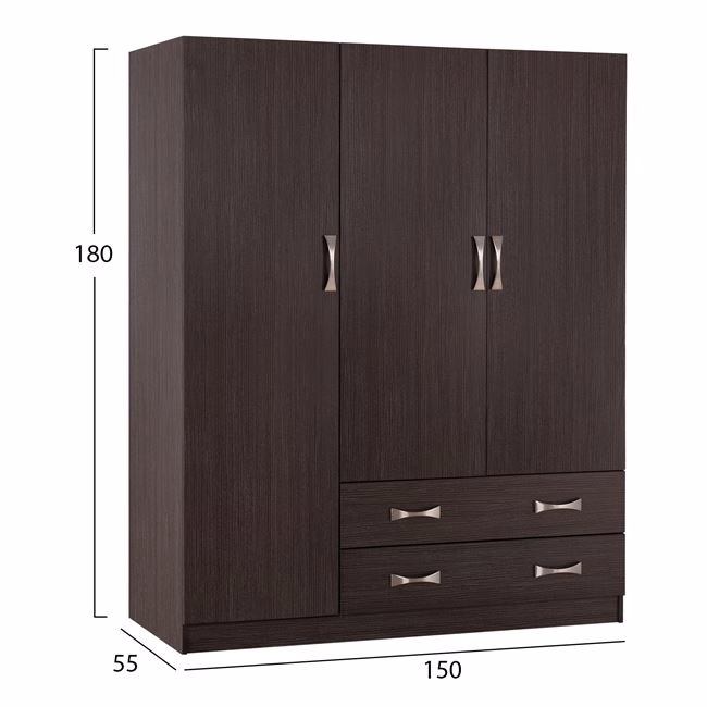 Τρίφυλλη ντουλάπα κατασκευασμένη από μελαμίνη σε zebrano απόχρωση. Στην δεξιά και μεσαία πλευρά του εσωτερικού της ντουλάπας, υπάρχει μεταλλικό δοκάρι ειδικά κατασκευασμένο για κρέμαση ρούχων, στο πάνω μέρος της διαθέτει 2 χώρους αποθήκευσης, ενώ κάτω έχει 2 ευρύχωρα συρτάρια. Στη δεξιά πλευρά της ντουλάπας υπάρχουν τρία ράφια ( τέσσερις χώροι αποθήκευσης ). Συνδυάζει την ποιότητα […]
