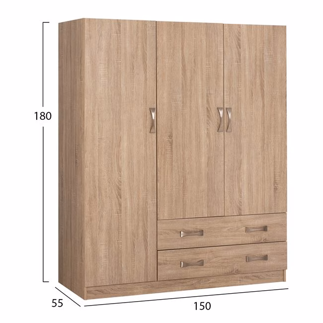 Ντουλάπα μελαμίνης δίφυλλη σε χρώμα Sonama. Στο εσωτερικό της ντουλάπας υπάρχει μεταλλικό δοκάρι ειδικά κατασκευασμένο για κρέμαση ρούχων και στο κάτω μέρος υπάρχουν 2 μεγάλα συρτάρια για αποθήκευση ρούχων. Διαστάσεις: 80x42x181 εκ. Παρατηρησεις Η ντουλάπα διατίθεται σε πακέτο αμοντάριστη με αναλυτικές οδηγίες συναρμολόγησης.
