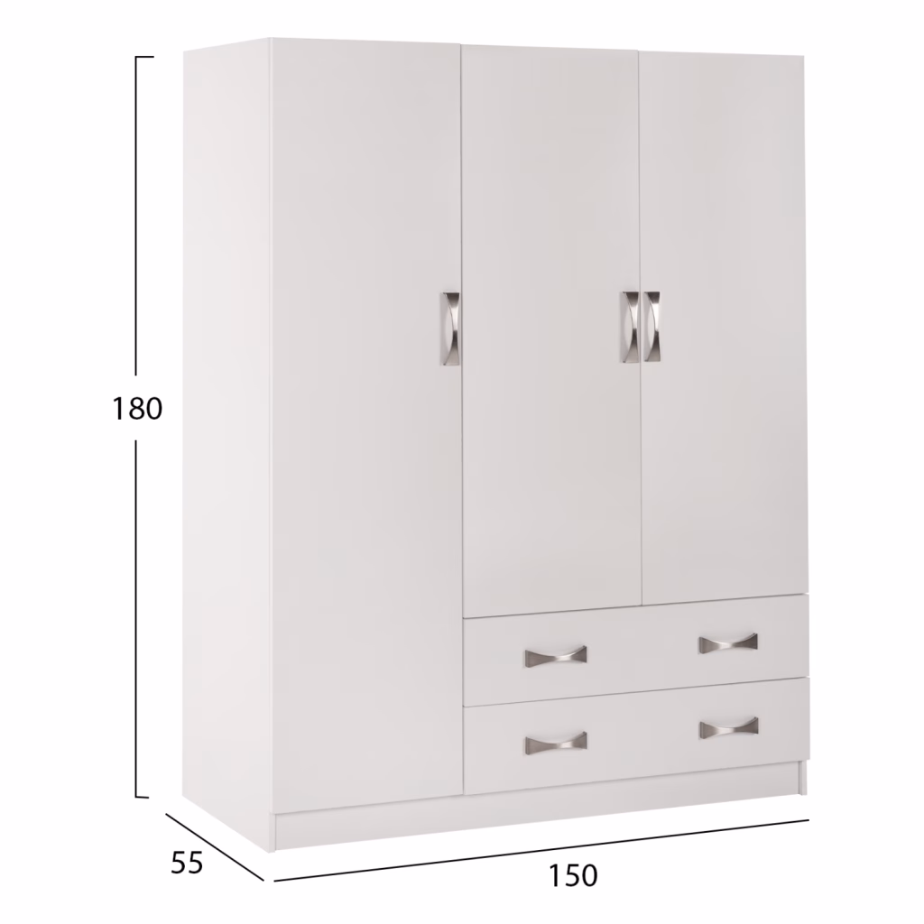 Ντουλάπα μελαμίνης δίφυλλη με δύο συρτάρια σε λευκή απόχρωση. Στο εσωτερικό της ντουλάπας υπάρχει μεταλλικό δοκάρι ειδικά κατασκευασμένο για κρέμαση ρούχων και στο κάτω μέρος υπάρχουν 2 μεγάλα συρτάρια για αποθήκευση ρούχων. Διαστάσεις: 80×42,5×180,5 εκ. Διαστάσεις ντουλάπας: 77,5x40x125,5 εκ. Διαστάσεις συρταριών Α: 72,5x32x18,5 εκ. Διαστάσεις συρταριών Β: 72,5x32x19 εκ. Παρατηρησεις Η ντουλάπα διατίθεται σε πακέτο […]