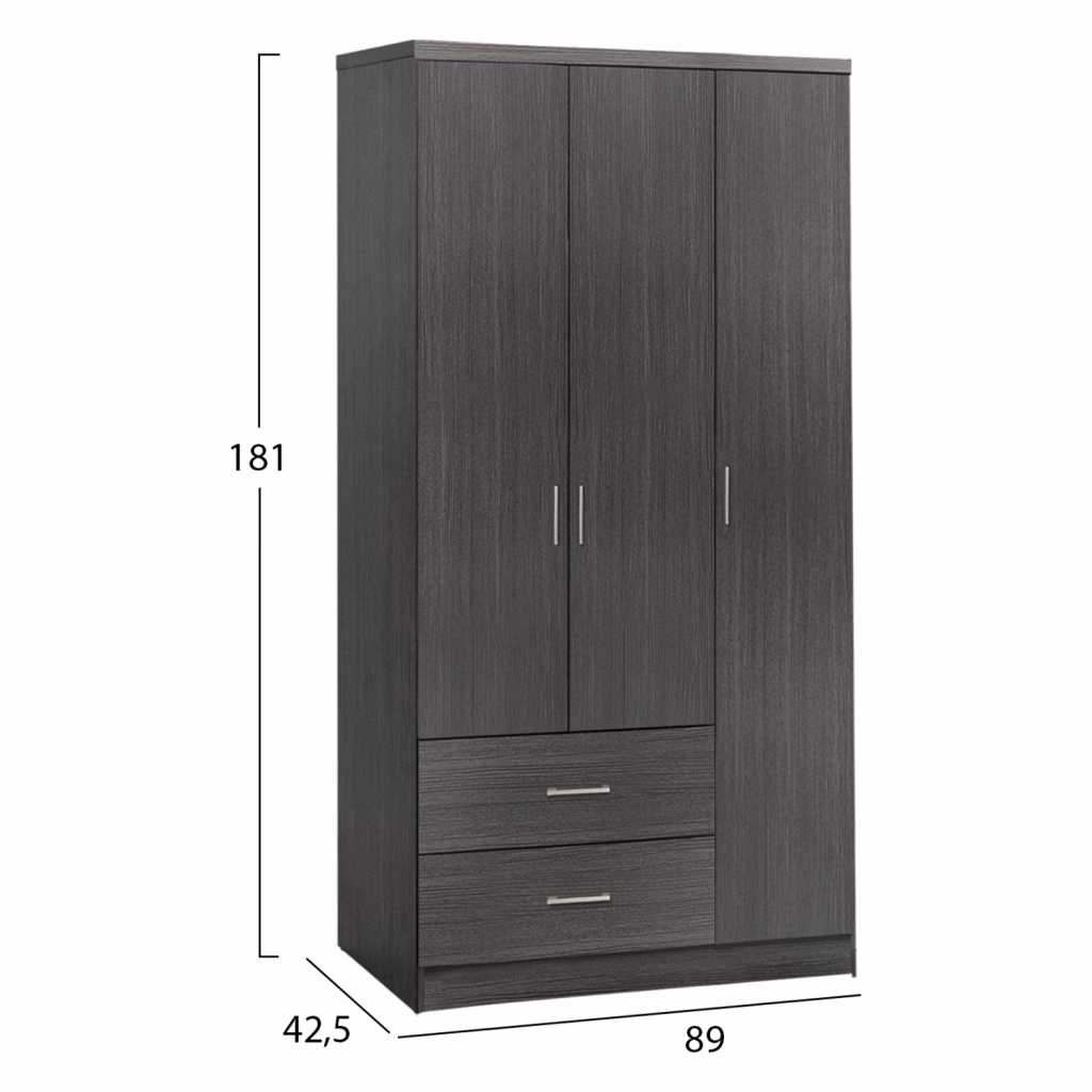 Ντουλάπα μελαμίνης δίφυλλη σε χρώμα Sonama – γκρι. Στο εσωτερικό της ντουλάπας υπάρχει μεταλλικό δοκάρι ειδικά κατασκευασμένο για κρέμαση ρούχων και στο κάτω μέρος υπάρχουν 2 μεγάλα συρτάρια για αποθήκευση ρούχων. Διαστάσεις: 80x42x180 εκ. Παρατηρησεις Η ντουλάπα διατίθεται σε πακέτο αμοντάριστη με αναλυτικές οδηγίες συναρμολόγησης.