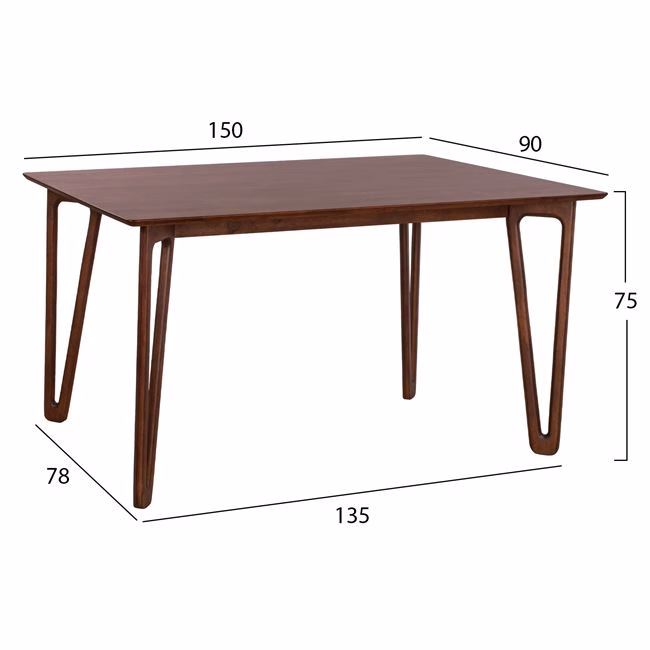 Ένα κομψό τραπέζι σε μοντέρνο σχεδιασμό πρόκειται να γίνει ένα διαχρονικό κομμάτι στην τραπεζαρία σας. Το τραπέζι είναι κατασκευασμένο από μασίφ ξύλο rubberwood σε καρυδί απόχρωση, το οποίο είναι εξαιρετικά ανθεκτικό και σταθερό. Συνδυάστε το με καρέκλες με την ίδια αισθητική και αποκτήστε την τραπεζαρία που πάντα επιθυμούσατε. Διαστάσεις: 150x90x75 εκ. Διαστάσεις ανοίγματος ποδιών: 135×78 […]