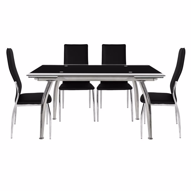 ΤΟ ΣΕΤ ΠΕΡΙΛΑΜΒΑΝΕΙ Ένα τραπέζι ανοιγόμενο σε μοντέρνο σχεδιασμό, με γυαλί ασφαλείας 10mm και μεταλλικά πόδια. Xρώμα γυαλιού.Μαύρο. Χρώμα μετάλλου.Χρώμιο. Διαστάσεις.120Χ80Χ75 ύψος+50 εκ. Τέσσερις καρέκλες κουζίνας από μεταλλικό σκελετό χρωμίου και επένδυση από δερματίνη σε μαύρο χρώμα. Διαστάσεις εξωτερικές: 99εκ ύψος x 45εκ φάρδος x 55εκ βάθος Διάσταση καθίσματος καθαρό: 42εκ x 38εκ Διάσταση πλάτης […]