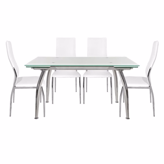 ΤΟ ΣΕΤ ΠΕΡΙΛΑΜΒΑΝΕΙ Ενα τραπέζι ανοιγόμενο σε μοντέρνο σχεδιασμό, με γυαλί ασφαλείας 10mm και μεταλλικά πόδια. Xρώμα γυαλιού.Λευκό. Χρώμα μετάλλου.Χρώμιο. Διαστάσεις.120Χ80Χ75 ύψος+50 εκ. Τέσσερις καρέκλες κουζίνας από μεταλλικό σκελετό χρωμίου και επένδυση από δερματίνη σε λευκό χρώμα. Διαστάσεις εξωτερικές: 99εκ ύψος x 45εκ φάρδος x 55εκ βάθος Διάσταση καθίσματος καθαρό: 42εκ x 38εκ Διάσταση πλάτης […]