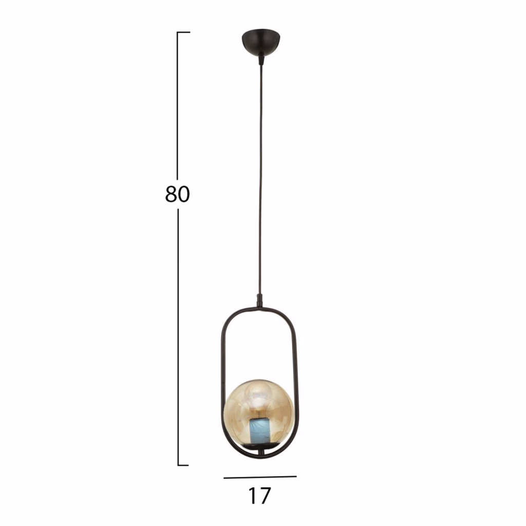 Φωτιστικό οροφής, σε μαύρη απόχρωση. Ένα φωτιστικό εξαιρετικής ποιότητας, με ξεχωριστό design,πρωτότυπο και κομψό στιλ, για την ανανέωση της διακόσμησης του προσωπικού σας χώρου. Κατασκευασμένο από μεταλλικό σκελετό, εξαιρετικής αντοχής. Δέχεται λαμπτήρα E27. Υπάρχει δυνατότητα χρήσης λαμπτήρων LED. Διαστάσεις: 17×80 εκ. Διαστάσεις γλόμπου: 15x15cm Ευρωπαϊκής κατασκευής και προέλευσης. Το προϊόν διατίθεται σε εργοστασιακή συσκευασία.