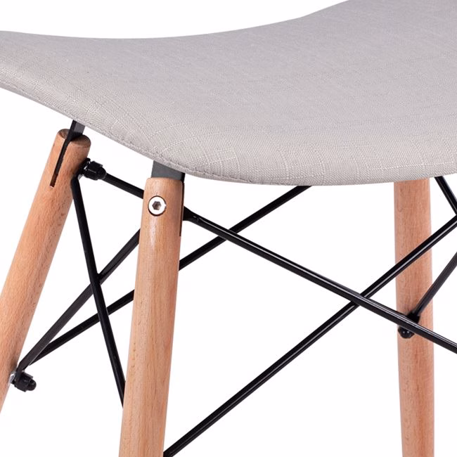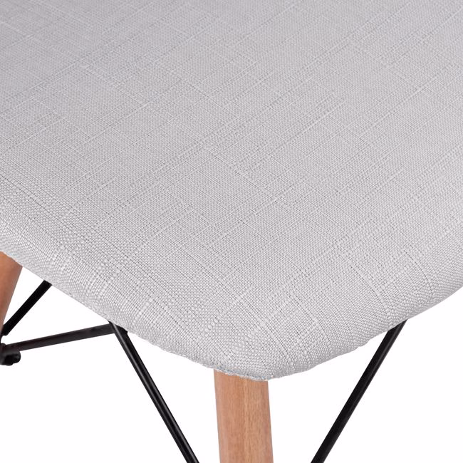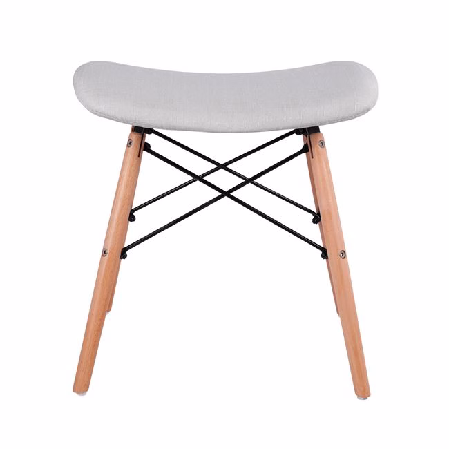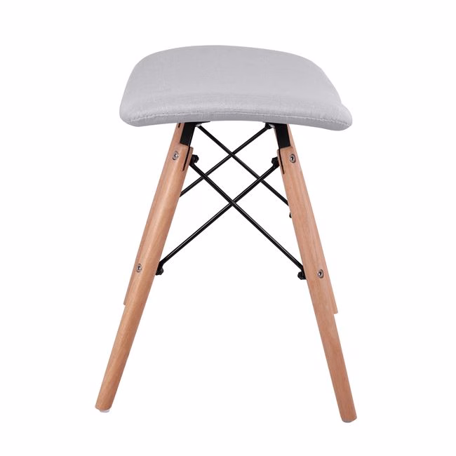 Σκαμπό από ύφασμα σε απόχρωση ανοιχτό γκρι. Τα πόδια του σκαμπό είναι από μασίφ ξύλο.